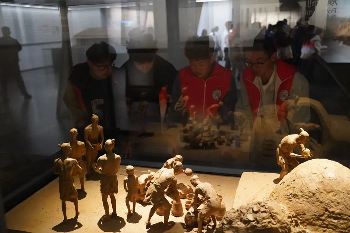 师生们循着历史脉络有序参观各展厅,在讲解员的细致介绍下,细赏兽面纹铜方鼎、镂空兽面纹铜钺等镇院文物,端详商代手工业铸造遗存与商贸相关器物,探寻商代商贸契约的早期萌芽,感受古代工匠精雕细琢、精益求精的造器初心,清晰梳理出早商时期手工业发展、商贸往来的历史轨迹,直观领略早商文明的璀璨成就与商都作为华夏早期王都的恢弘底蕴,在与古老文明的对话中,深切体会中华优秀传统文化的厚重与绵长。