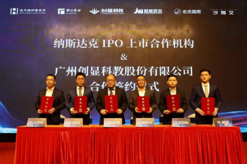 扬帆破浪乘风去,海阔云高晴万里!创显科教董事长张瑜向与会嘉宾介绍了创显科教纳斯达克IPO计划,并分别与浩天律所、锦石资本、君威资本、老虎国际、沙利文等多家上市合作机构签订合作协议,老虎国际作为中介机构代表宣布将快速推动创显科教赴美国纳斯达克上市的筹备和落地工作。