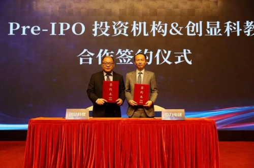 同时,在浙江金华金义区招商服务公司、佛山市顺德区招商局与创东方投资、纽顿汽车集团等投资机构见证下,创显科教与中力电投资建设(深圳)集团有限公司共同签署Pre-IPO投资战略合作协议。