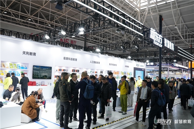 在展区现场,新东方智慧教育四大业务板块吸引众多观众驻足: